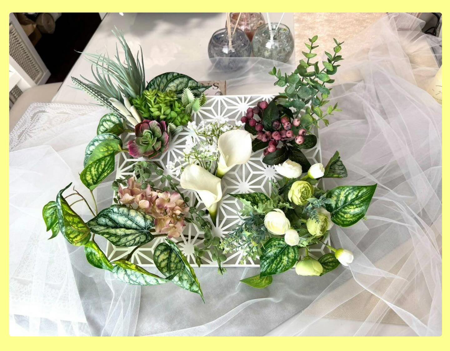 縦横約30センチでできているので、複数組み合わせて壁一面に広げることが可能。さらに、部分的な取り替えができるため、花が枯れた際も該当部分だけ交換すればOK。